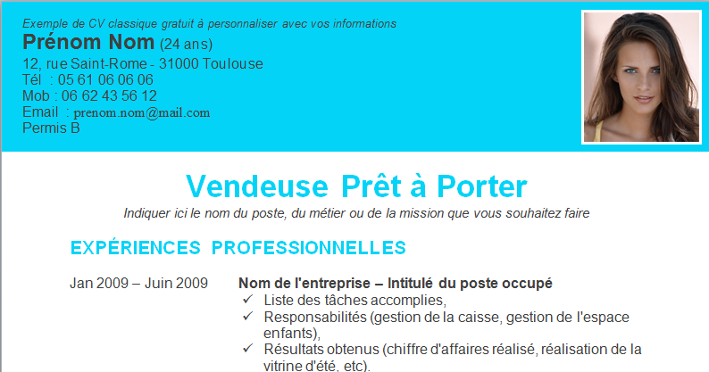 25/03/2014 exemples de cv le cv lettre de recommandation travailler à l’étranger travailler modèles: téléchargez exemple de cv: vendeurvendeuse voici un exemple de cv pour postuler en tant que vendeur...